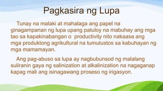 Ipapahamak ng Diyos yaong mga nagpapahamak sa lupa. Pagsunog ng kabundukan dPagdami ng tao 5. Halos saan ka man pumunta sa mundo ngayon ang mga tao kahit na nakikita ang mga epekto ng pagkasira ng lupa ay nagdaragdag pa rin sa mga sanhi ng pagkasira ng lupa.